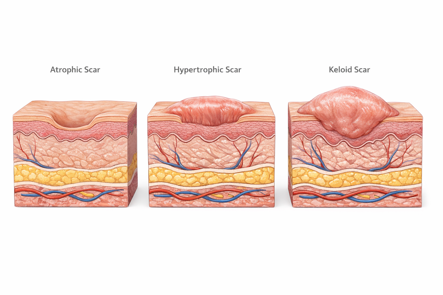 Scars form as part of the skin’s healing process following injury or inflammation.